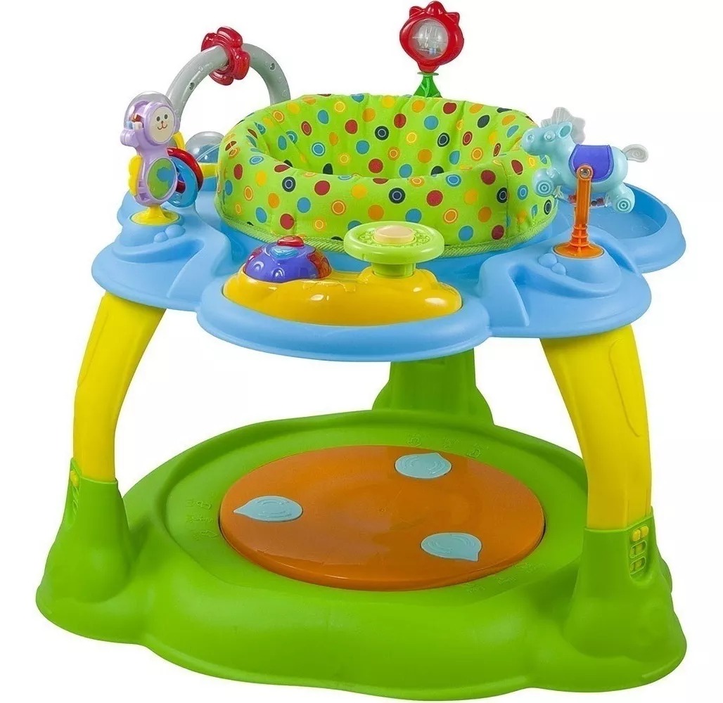 É um modelo de Centro Educativo que conta com brinquedos diversos localizados na base superior, equipados com luzes, sons e movimentos que estimulam a diversão, além de um assento totalmente acolchoado, confeccionado em tecido suave e de fácil higienização.