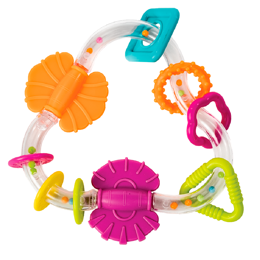 Vai entreter o bebê com seu formato divertido e fácil de segurar.
