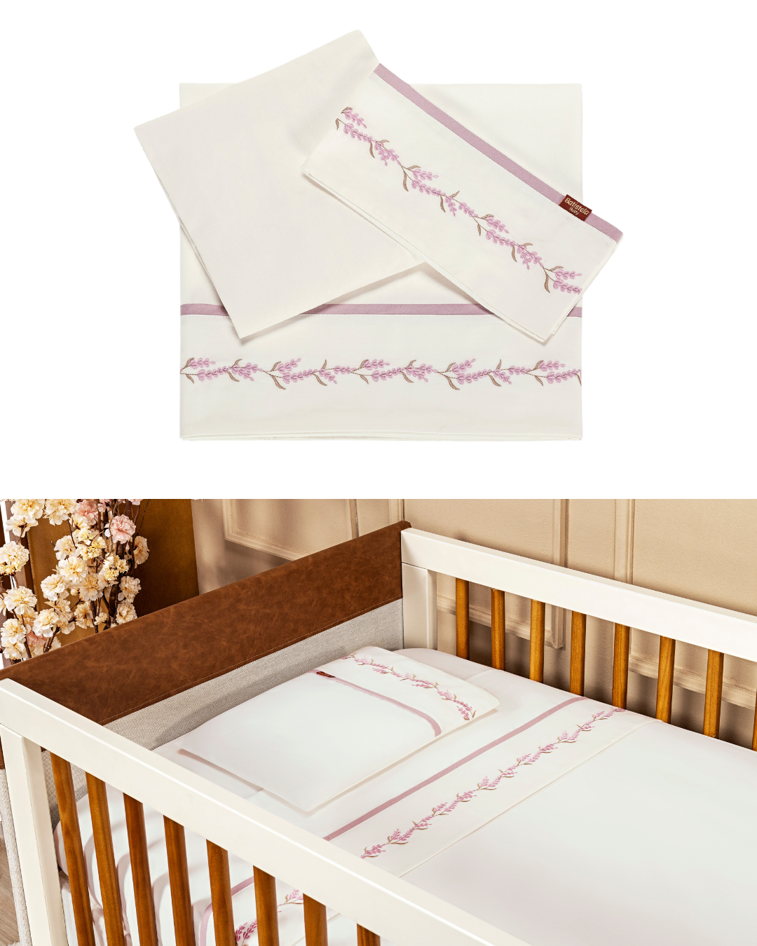 Jogo de Lençol de Berço Le Jardim 3 Pçs 100% Alg. E24127 Batistela